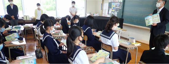 実際に工場を訪問しなくても、まるで工場にいるかのような工場見学動画を利用して授業を進めていきます。