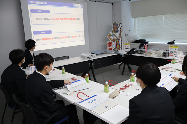 NGPのSDGsへの取り組みとして、リユース部品活用によるCO2削減効果と、香川県豊島での環境保全活動について紹介し、環境問題に対して当事者意識を持つことの大切さを伝えました。